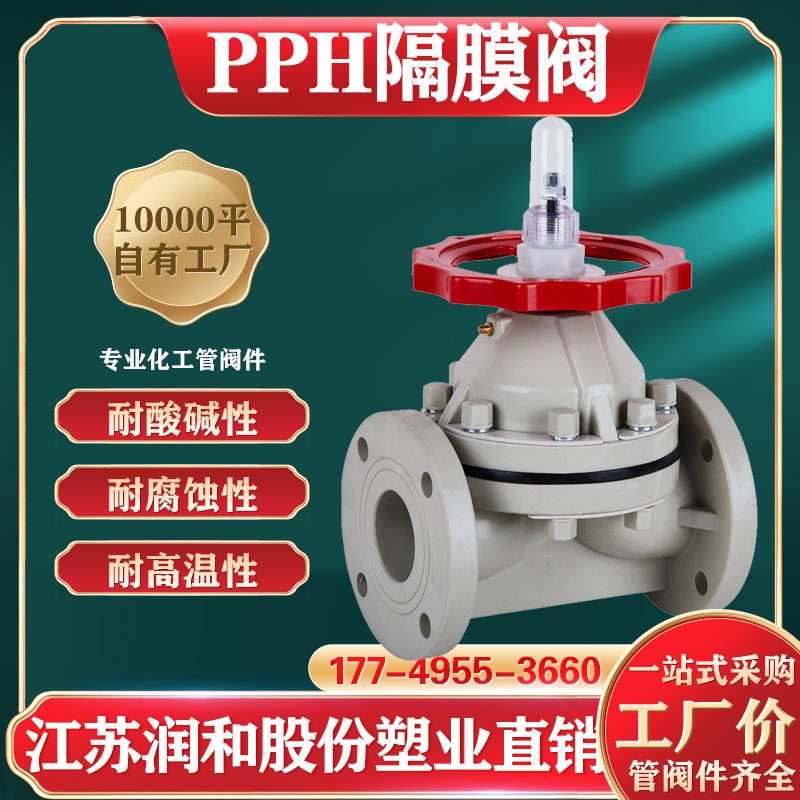 PPH隔膜阀的结构简单、流体阻力小、流通能力较同规格的其他类型阀大;无泄漏,能用于高粘度及有悬浮颗粒介质的调节。隔膜把介质与阀杆上腔隔离,所以没有填料介质也不会外漏。但是,由于隔膜和衬里江苏ag九游会登陆j9入口塑业材料的限制,耐压性、耐温性较差,一般只适用于1.6MPa公称压力和150℃以下。